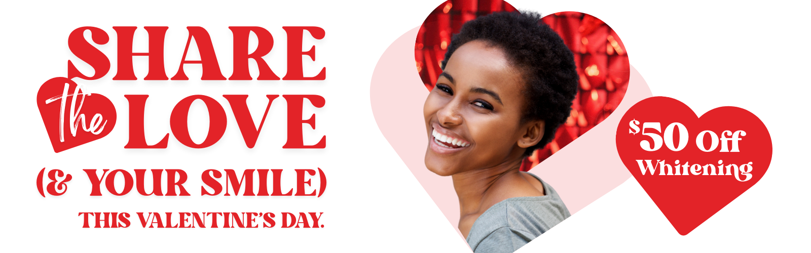 *Must mention this offer to redeem discount towards in-office whitening treatment. Whitening valid upon completion of comprehensive exam and any necessary x-rays, as determined by provider, and dental cleaning with the absence of gum disease. The offer cannot be combined with any insurance, reduced-fee program, other offer, or discount. ADA 9972. Offer valid from 02/09/2026 until 02/14/2026. Terms and conditions may apply.